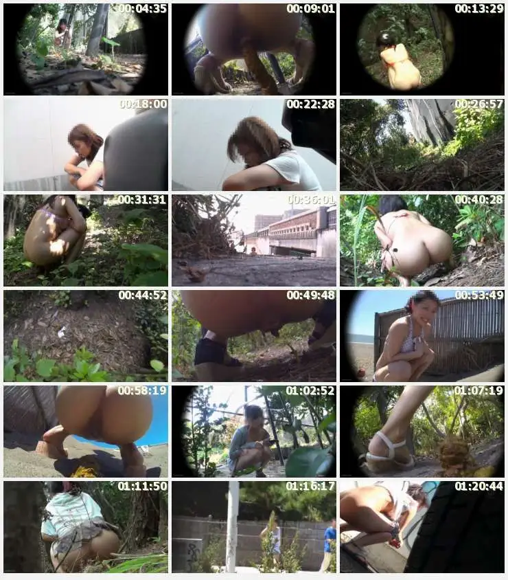 場所は湘南近くの木陰。外で野グソする女の子を小型カメラで近距離盗撮!盗撮者も驚く20名の大量脱糞収穫!誰にも見られていないと思い、遠慮なくブッ太い糞をブリブリ大量排泄!脱糞アナルモザ無し!!