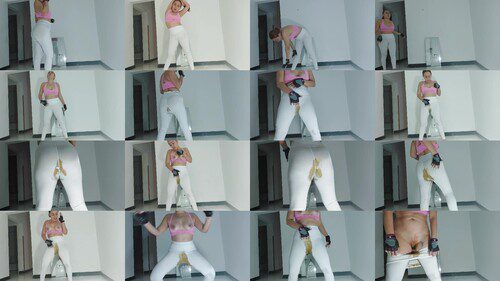 Sara is about to exercise. While she is getting ready her belly starte to rumble. She feels a big poop coming on. There isn’t a bathroom in site, oh no. The only thing she can do is poop in her white leggings. She doesn’t have extra clothes to change so she decides to do her exercises with poop in her leggings. As she is doing her exercises she gets turned on by the poop rubbing against her pussy and starts to masterbate.
